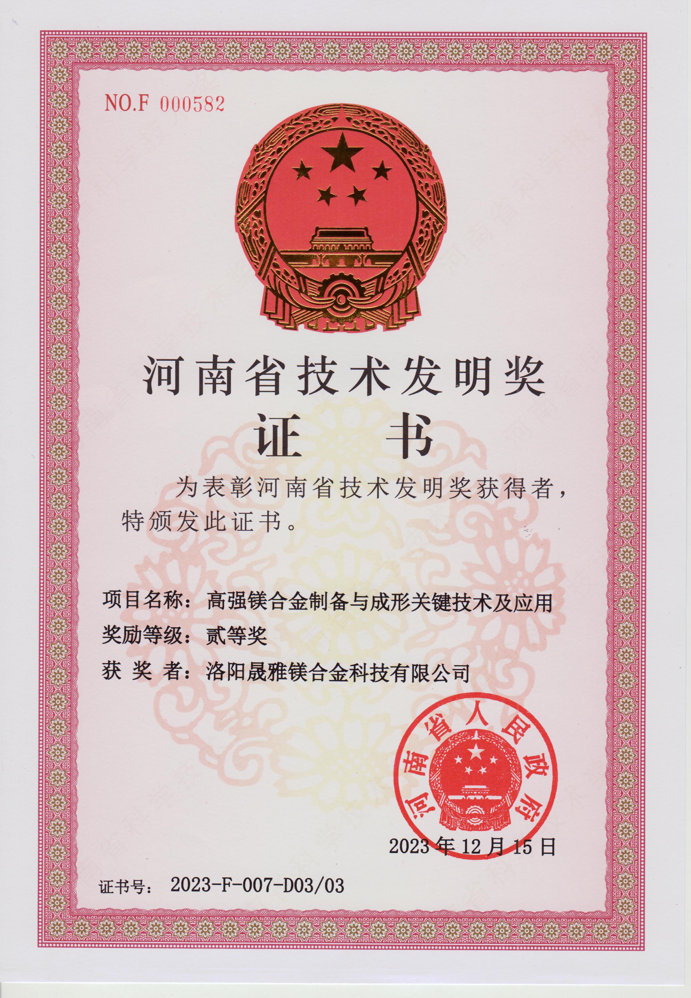 近期,洛陽晟雅公司與河南科技大學(xué)共同研發(fā)的“高強鎂合金制備與成形關(guān)鍵技術(shù)及應(yīng)用”榮獲河南省技術(shù)發(fā)明二等獎。